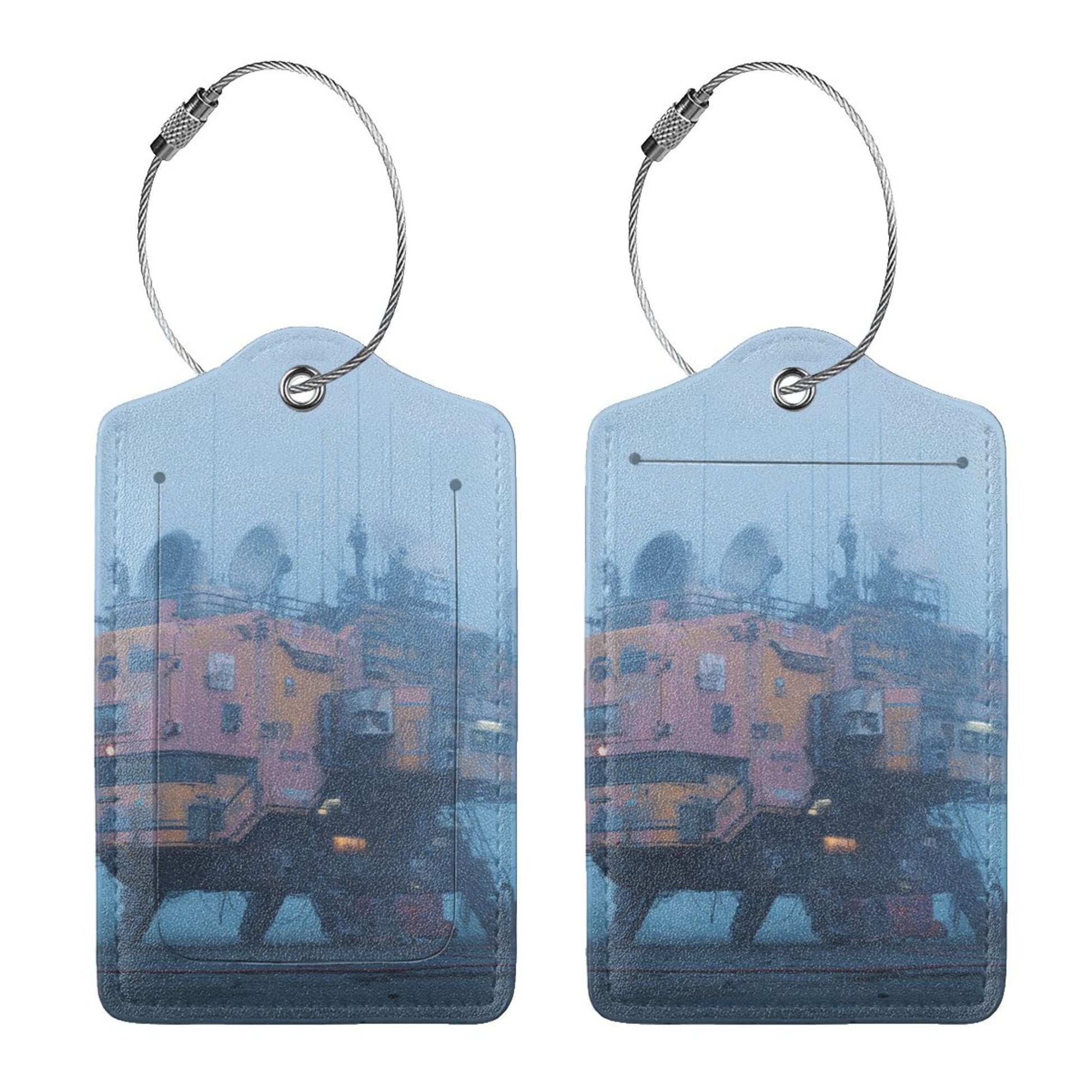 Cyberpunk Mech - Style Stainless Steel Leather Luggage Tags (2 - Pack, 2.9in×4.6in/7.3cm×11.6cm)