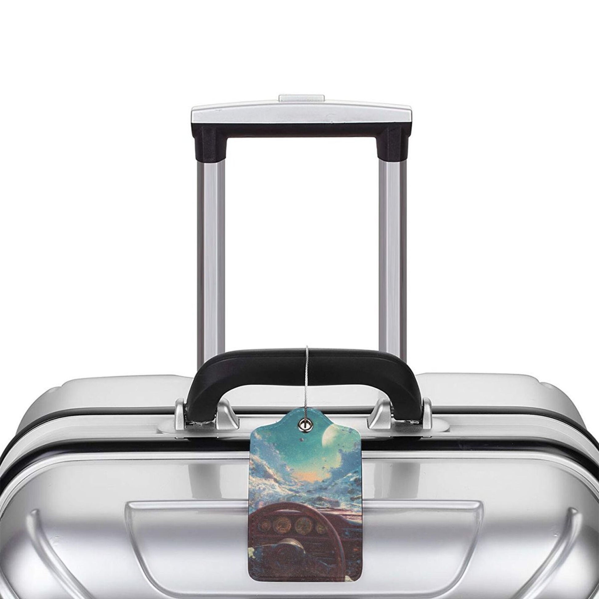 Cyberpunk - Style Cosmic Cockpit Stainless Steel Leather Luggage Tags (2 - Pack, 2.9in×4.6in/7.3cm×11.6cm)